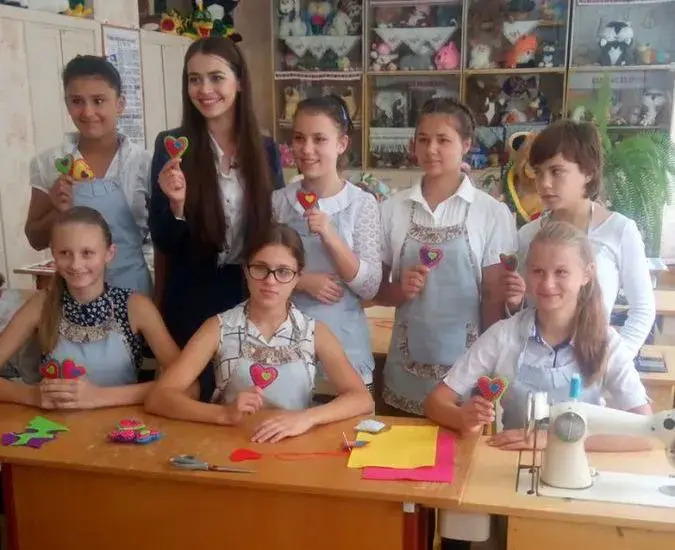 Красавица привезла в Каменскую школу-интернат канцтовары и одежду. И поблагодарила за сувениры-сердечки, пошитые руками воспитанников учреждения для участников конкурса «Мисс Мира».